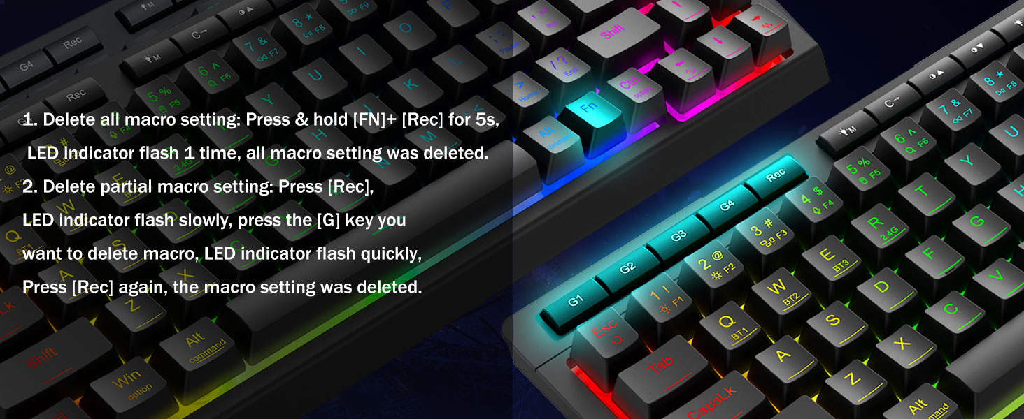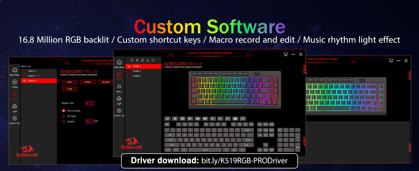 ماکروهای قابل تنظیم، کنترل بدون دردسر -4 کلید ماکرو داخلی (G1-G4) را فوراً برنامه ریزی کنید—بدون نیاز به نرم افزار. ترکیب های پیچیده برای بازی، میانبرهایی برای بهره وری یا دستورات رسانه ضبط کنید. گردش کار خود را در چند ثانیه دوباره تعریف کنید. همچنین می توانید از نرم افزار برای سفارشی کردن عملکردها، ایجاد ماکروها، تنظیم نورهای RGB و تنظیم میانبرها استفاده کنید. لینک نرم افزار: bit.ly/K524RGB-PRODriver