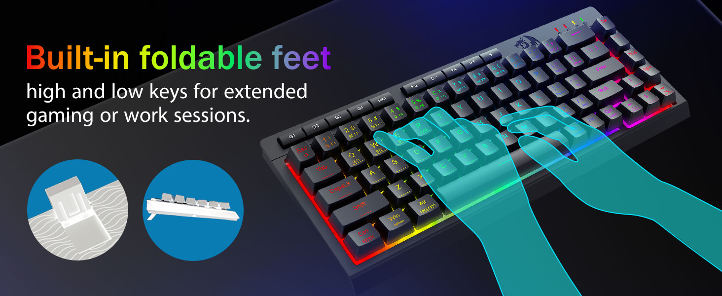 نورپردازی همهجانبه RGB و محیط قابل تنظیم -16.8 میلیون رنگ RGB را با 8 حالت از پیش تعیین شده (Rainbow Wave، Reactive Typing) + 6 پروفایل DIY آزاد کنید. روشنایی را از حالت درخشش پر جنب و جوش به حالت مخفی تنظیم کنید - ایده آل برای بازی های آخر شب یا استفاده در دفتر.