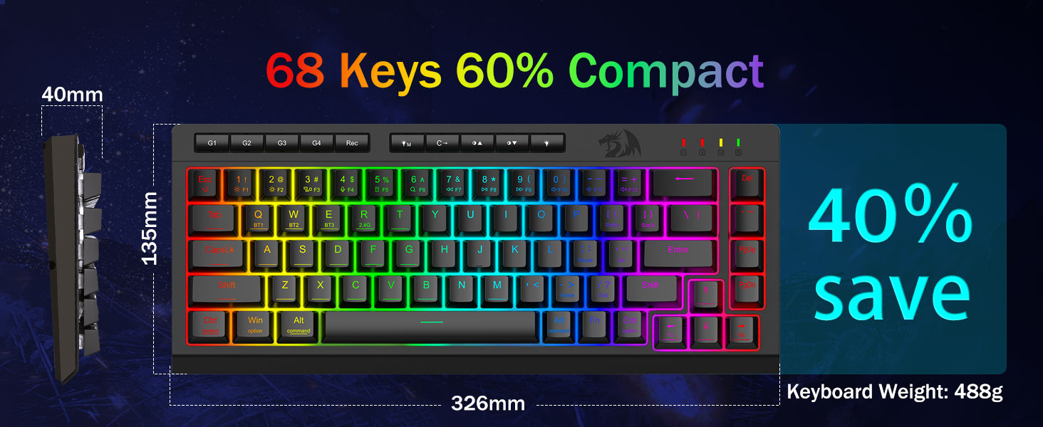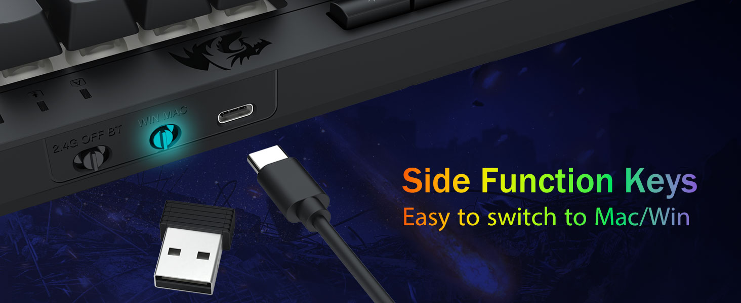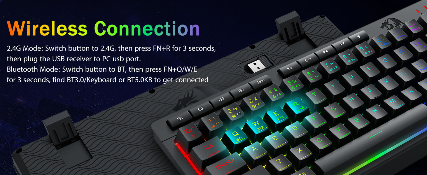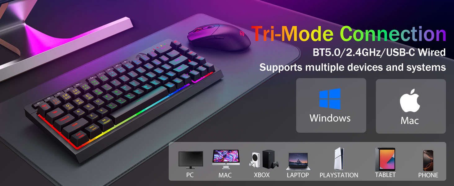 تطبیق پذیری سه حالته و تسلط بر چند دستگاه -به طور یکپارچه بین حالتهای سیمی بلوتوث 5.0، 2.4 گیگاهرتز بیسیم یا USB-C جابهجا شوید و حداکثر 5 دستگاه را به طور همزمان (PC، Mac، تبلت، تلفن، PS/XBOX) متصل کنید. به آسانی دستگاهها را از طریق کلیدهای میانبر یا دکمه کناری جابهجا کنید—برای تنظیمات هیبریدی کار/بازی عالی است. با باتری 4000 میلی آمپر ساعتی (بیش از 30 روز در حالت آماده به کار، 50 ساعت کارکرد RGB) برای هفته ها برق بمانید.