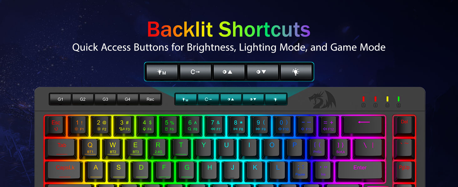 عملکرد بازی Pro-Grade و کنترل های اختصاصی با نور پس زمینه -دارای کلیدهای ضد شبح (کلیدهایی با خط زیر) که به 26 کلید اجازه می دهد تا به طور همزمان برای پاسخ سریع و دقیق بازی به روشی که مد نظر شماست کار کنند. دکمه های دسترسی سریع برای روشنایی، حالت روشنایی و حالت بازی برای تنظیم سریع روشنایی، پروفایل های نور و فعال کردن حالت بازی با لمس یک دکمه.