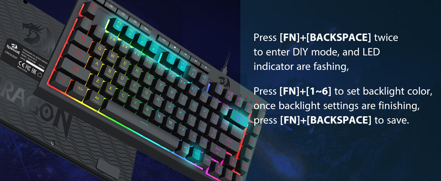 نور پس زمینه RGB واقعی -نور پسزمینه کامل پویا RGB امکان نورپردازی بیشماری را میدهد که فقط به تخیل شما محدود میشود. این صفحه کلید دارای 8 حالت روشنایی از پیش تنظیم شده و 6 اسلات اضافی برای حالت های قابل تنظیم است. این برد همچنین امکان کنترل روشنایی را فراهم می کند که در صورت عدم نیاز به نور، از بسیار روشن تا کاملاً خاموش است.