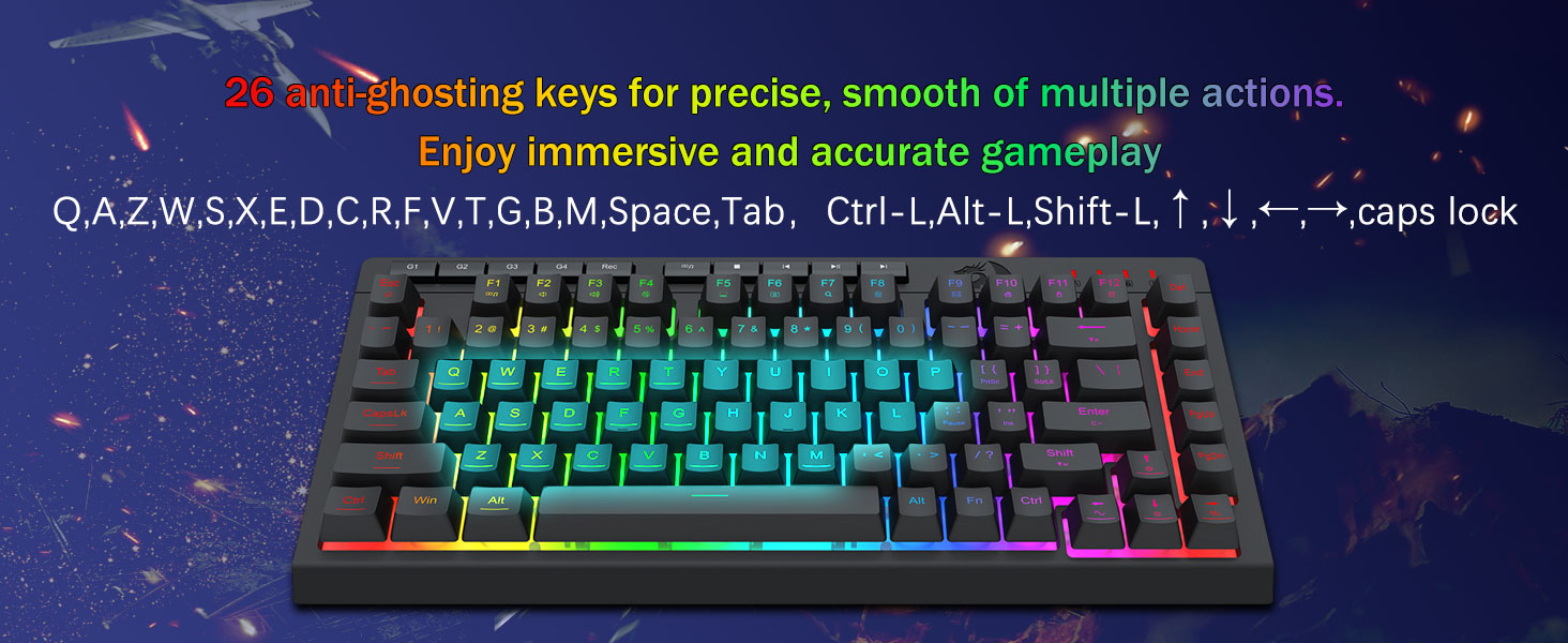 مشکی K524 Wired Gaming RGB با نور پسزمینه، صفحهکلید ۷۵٪
