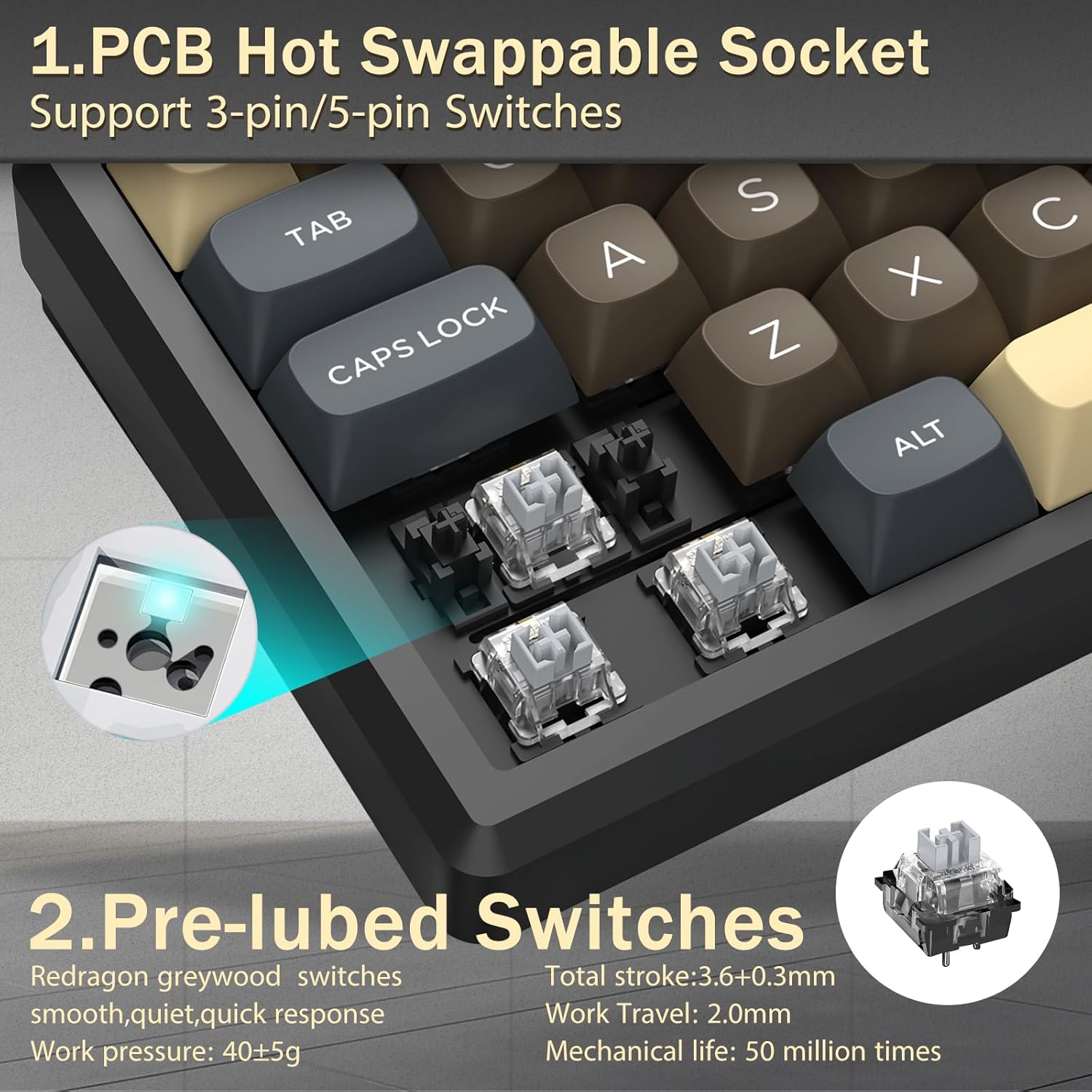 طول عمر کلید: تا 50 میلیون ضربه کلید