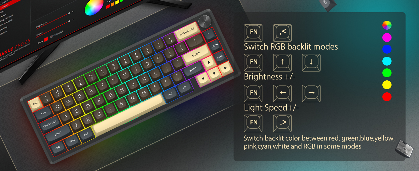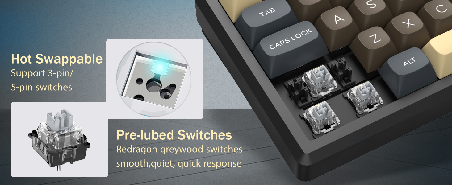 این صفحه کلید با چیدمان 60 درصدی خود، کلیدهای غیر ضروری را حذف می کند و در عین حال عملکرد اصلی را از طریق ترکیب کلیدها حفظ می کند. این طراحی به کاهش شلوغی میز کمک می کند و فضای بیشتری را برای حرکت ماوس فراهم می کند و آن را برای محیط های بازی و بهره وری مناسب می کند.