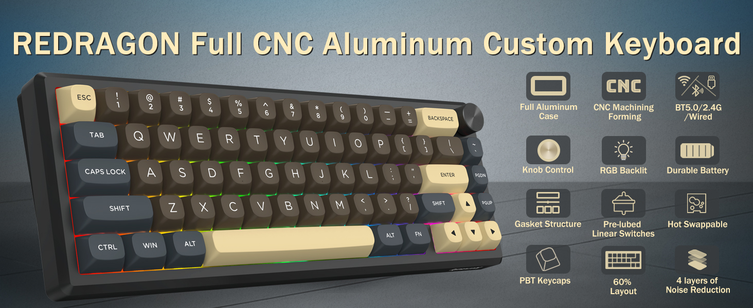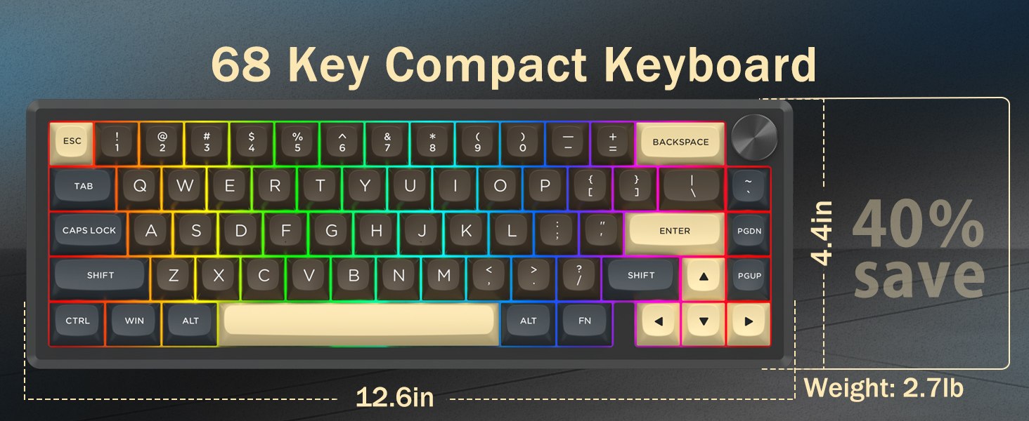 A: طرح 60٪ با حذف کلیدهای غیر ضروری، اندازه صفحه کلید را کاهش می دهد. این فضای میز بیشتری را فراهم می کند و قابلیت حمل را بهبود می بخشد و در عین حال امکان دسترسی به همه عملکردها را از طریق ترکیب کلیدها فراهم می کند.