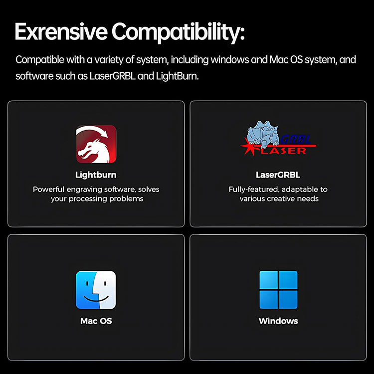 · ❤️ سازگاری گسترده:سازگار با انواع سیستم ها از جمله ویندوز و سیستم عامل مک و نرم افزارهایی مانند GRBL و LightBurn.
