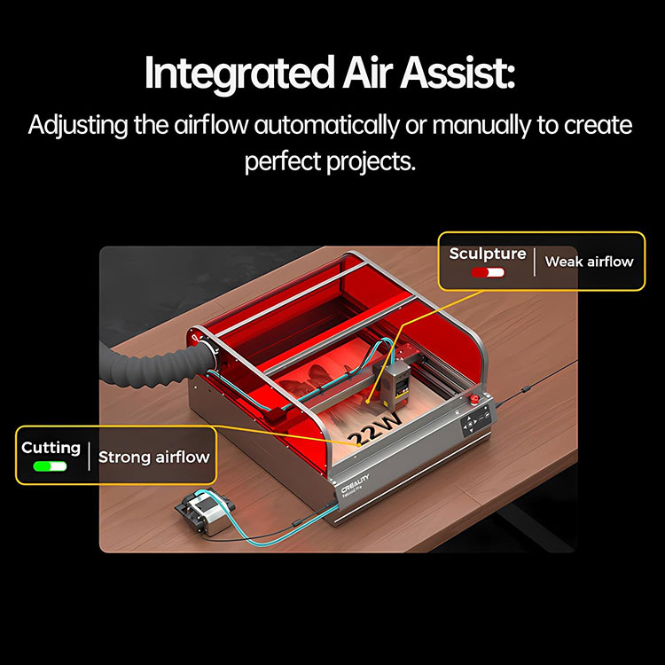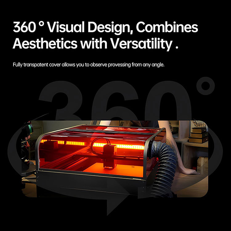 حکاکی لیزری 22 واتی پرو، حکاکی و برش محصور 22 واتی با کمک هوای یکپارچه و دوربین داخلی با وضوح بالا برای چوب، فلز، چرم، کلاس ایمنی 1