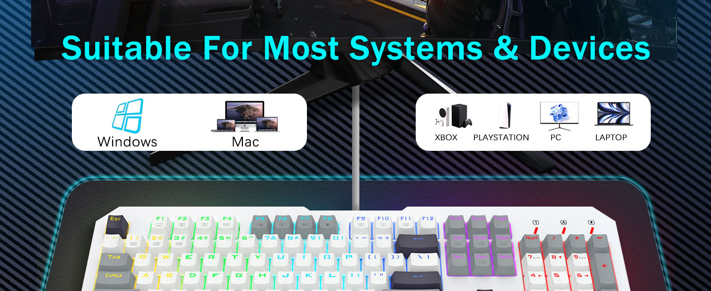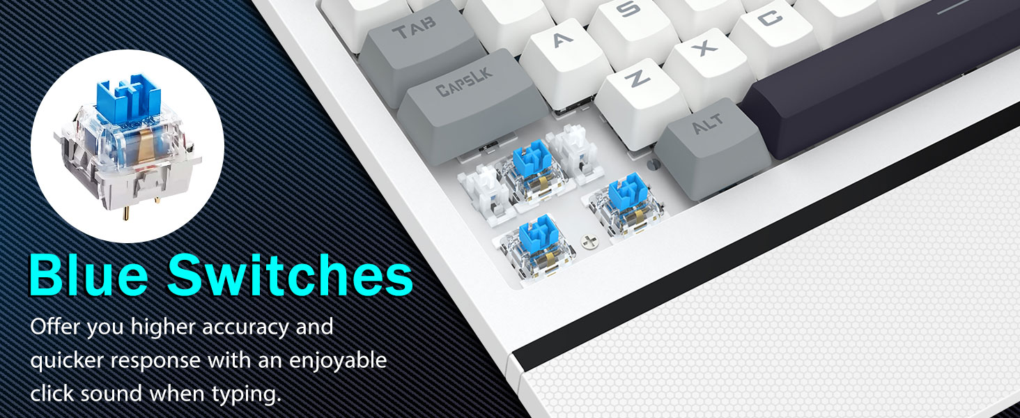 【سوئیچ های آبی پاسخگو برای تایپ دقیق】صفحه کلید رایانه شخصی ما دارای سوئیچ های آبی رنگی است که زمان پاسخ دهی سریع و دقت قابل توجهی را ارائه می دهد. هر ضربه کلید صدای کلیک رضایت بخشی تولید می کند و تجربه تایپ شما را افزایش می دهد. با حرکت کلید عمیق تر، بازخورد قوی تر، و فاصله کلید بیشتر، تایپ نه تنها دقیق تر، بلکه بسیار راحت تر است. اگر از طرفداران آن حس لمسی و "کلیک" هستید، صفحه کلید ما بهترین انتخاب برای شماست.