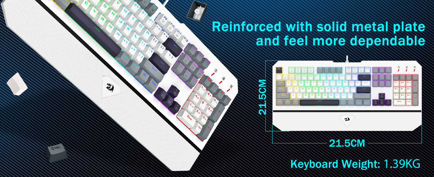 【100% Anti-Ghosting و 11 میانبر چند رسانه ای】پنل صفحه کلید که با آلیاژ فلزی درجه یک و مواد ABS ساخته شده است، بسیار محکم است و در برابر خراش مقاوم است. کانکتور USB با روکش طلا، اتصال پایدار و قابل اعتماد را برای عملکرد نهایی بازی تضمین می کند. با وزن 1.39 کیلوگرم، این صفحه کلید مانند یک مخزن جامد در دستان شما احساس می کند و ثبات بی نظیری را در هنگام استفاده ارائه می دهد.