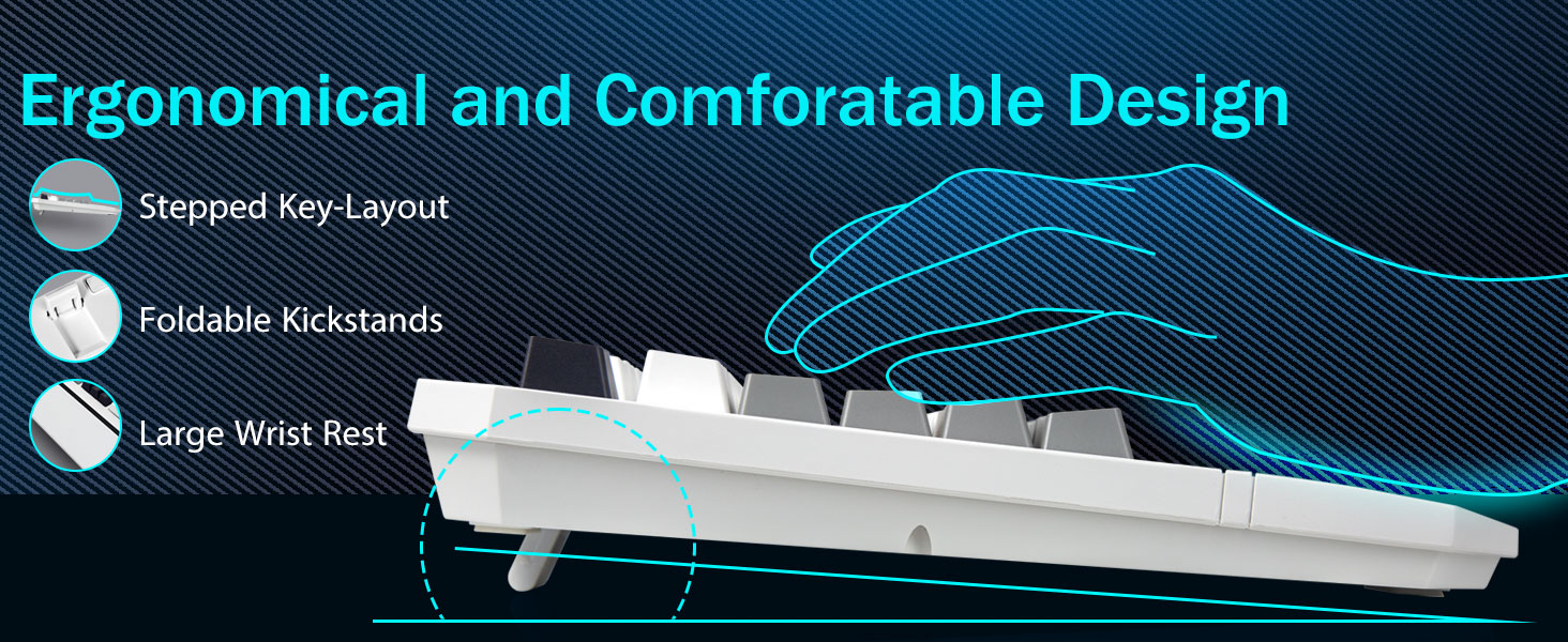 【ارگونومی پیشرفته برای راحتی تمام روز】صفحهکلید گیمر رایانههای شخصی ما که با در نظر گرفتن راحتی شما طراحی شده است، دارای یک پله علمی - طرح کلاهک بالا و یک استراحتگاه مچی جادار است. این تنظیم بازوهای شما را در وضعیت طبیعی نگه می دارد و خستگی دست را در طول استفاده طولانی مدت کاهش می دهد. صفحه کلید سیمی همچنین دارای 2 پایه محکم و تاشو عقب است که به شما امکان می دهد شیب را برای وضعیت مطلوب تنظیم کنید.
