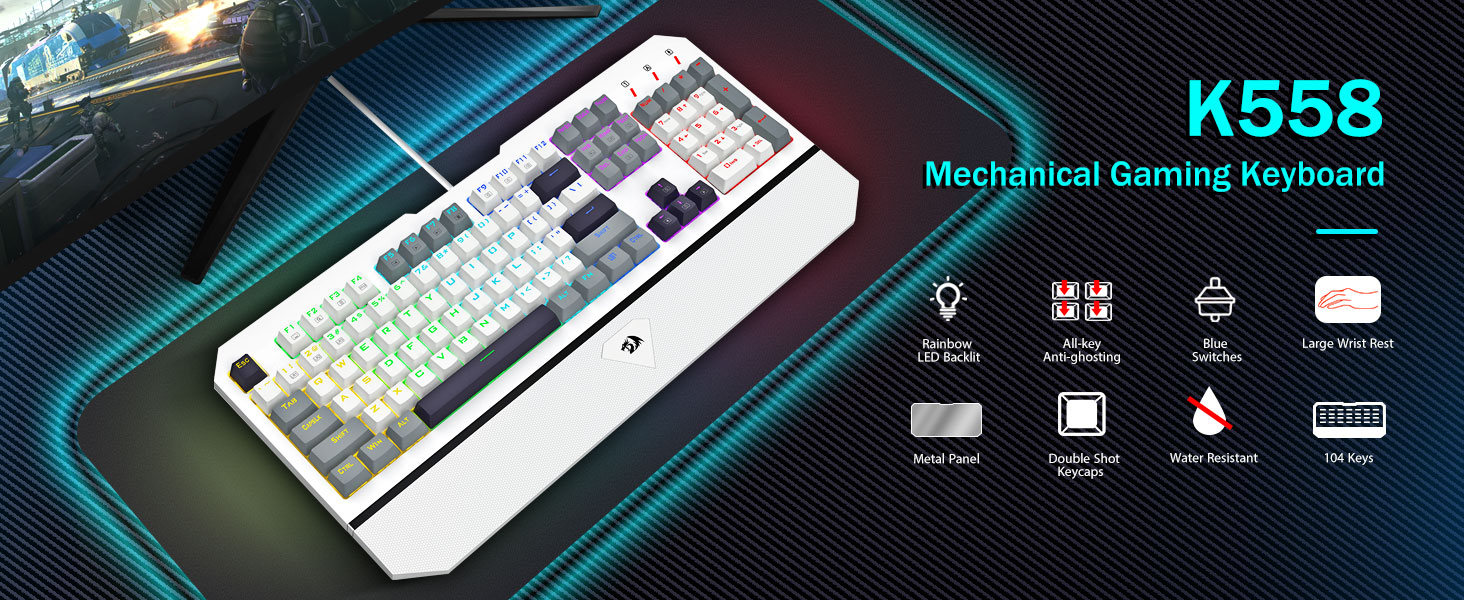 از تایپ بیوقفه با فناوری 100% ضد شبح لذت ببرید، بدون توجه به سرعت تایپ کردن همه کلیدها به طور همزمان. با 11 کلید میانبر چند رسانه ای، می توانید به سرعت به عملکردهایی مانند ماشین حساب، کنترل رسانه، تنظیم صدا دسترسی داشته باشید. صفحهکلید مکانیکی بازی K558، همراه با یک عدد پد، بهرهوری شما را افزایش میدهد. این کیبورد سازگار با ویندوز 7/8/10/XP/VISTA/95/98/2000/ME و سیستم عامل مک، ایکس باکس و غیره، طول عمری تا 50 میلیون فشار دارد.